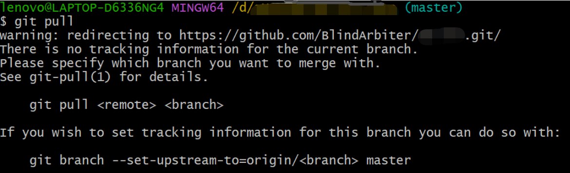 0x02 There is no tracking information for the current branch. Please specify which branch you want to merge with.