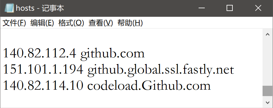 C:\Windows\System32\drivers\etc\hosts,如果有的话检查域名是否正确,如果没有的话在末尾加上刚刚查的ip地址和域名,格式像这样: