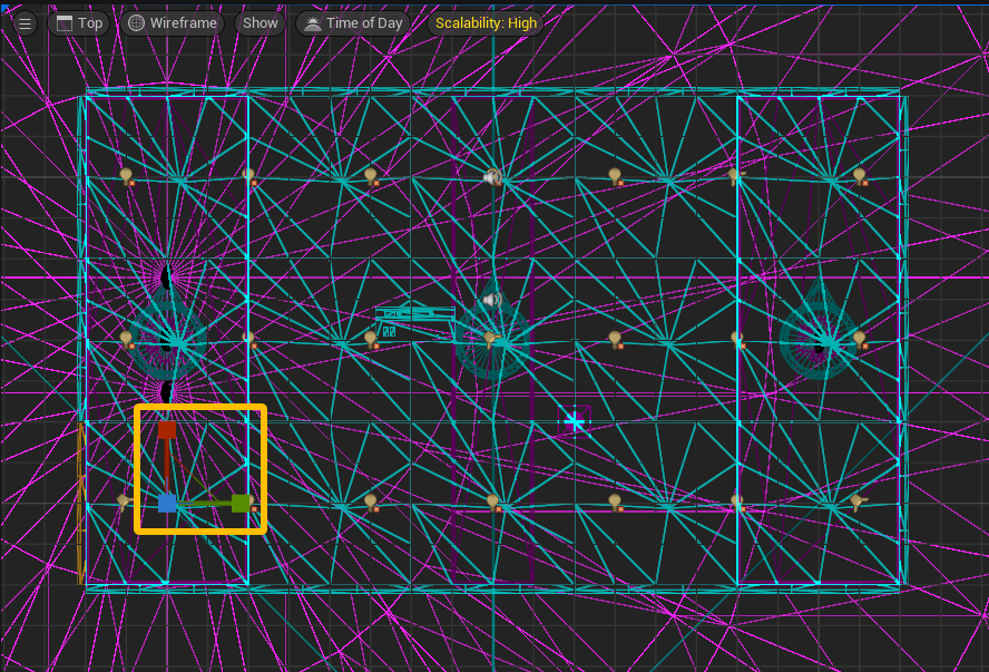 以 Top 视角为例,当我们选中某个资产时,可以直接移动它在整个俯视图当中的位置到我们想要的位置。 在这个模式下要按住右键才能拖动画面。